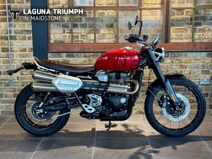 Triumh Scrambler 1200 X Authentic Scrambler style with class-defining adventure ready capability; the Scrambler 1200 is the real deal. All of the Scrambler 1200’s incredible performance, capability and style, made more accessible. With its low seat height and effortless ergonomics, the Scrambler 1200 X inspires confidence on the road and off it.This bike also comes with some fantastic features: - 90 PS - 110 Nm - 6 Speed - Marzocchi front and rear suspension - Nissin brake calipers - 15 Litre tank - 228 kg - 10000 mile/12 month intervalsRide away within days! Visit laguna.co.uk to view all of our new and used motorcycles. At Laguna Motorcycles, we are committed to ensure all our used vehicles have undergone a full PDI check and are HPI cleared. We offer a range of finance products (subject to terms and conditions) and can offer nation-wide delivery at an affordable price. Delivery to mainland UK is available. Sale price is subject to an additional £98.00 admin fee. Please contact us for further information on this vehicle.