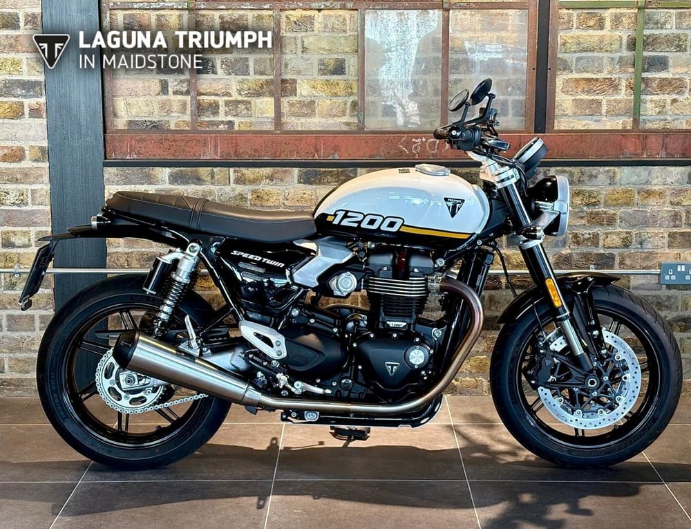 The new Speed Twin 1200 is the ultimate fusion of exhilarating sports performance and agile dynamic handling delivered with classic style and character.This bike also comes with some fantastic features: - Triumph accessory short front indicators - Triumph accessory short multifunction rear indicators - Triumph accessory engine case protectors - Triumph accessory tank pad - Marzocchi suspension - Radial brakes - 14.5 Litre tank - 10000 mile/12 month service intervalsRide away within days! Visit laguna.co.uk to view all of our new and used motorcycles. At Laguna Motorcycles, we are committed to ensure all our used vehicles have undergone a full PDI check and are HPI cleared. We offer a range of finance products (subject to terms and conditions) and can offer nation-wide delivery at an affordable price. Delivery to mainland UK is available. Sale price is subject to an additional £98.00 admin fee. Please contact us for further information on this vehicle.
